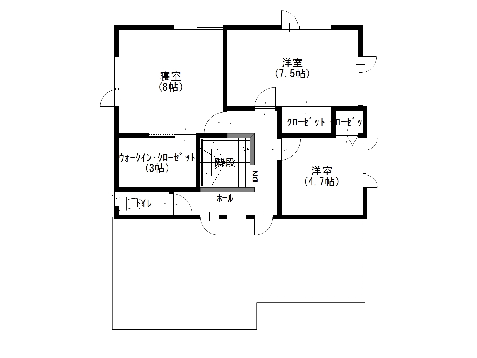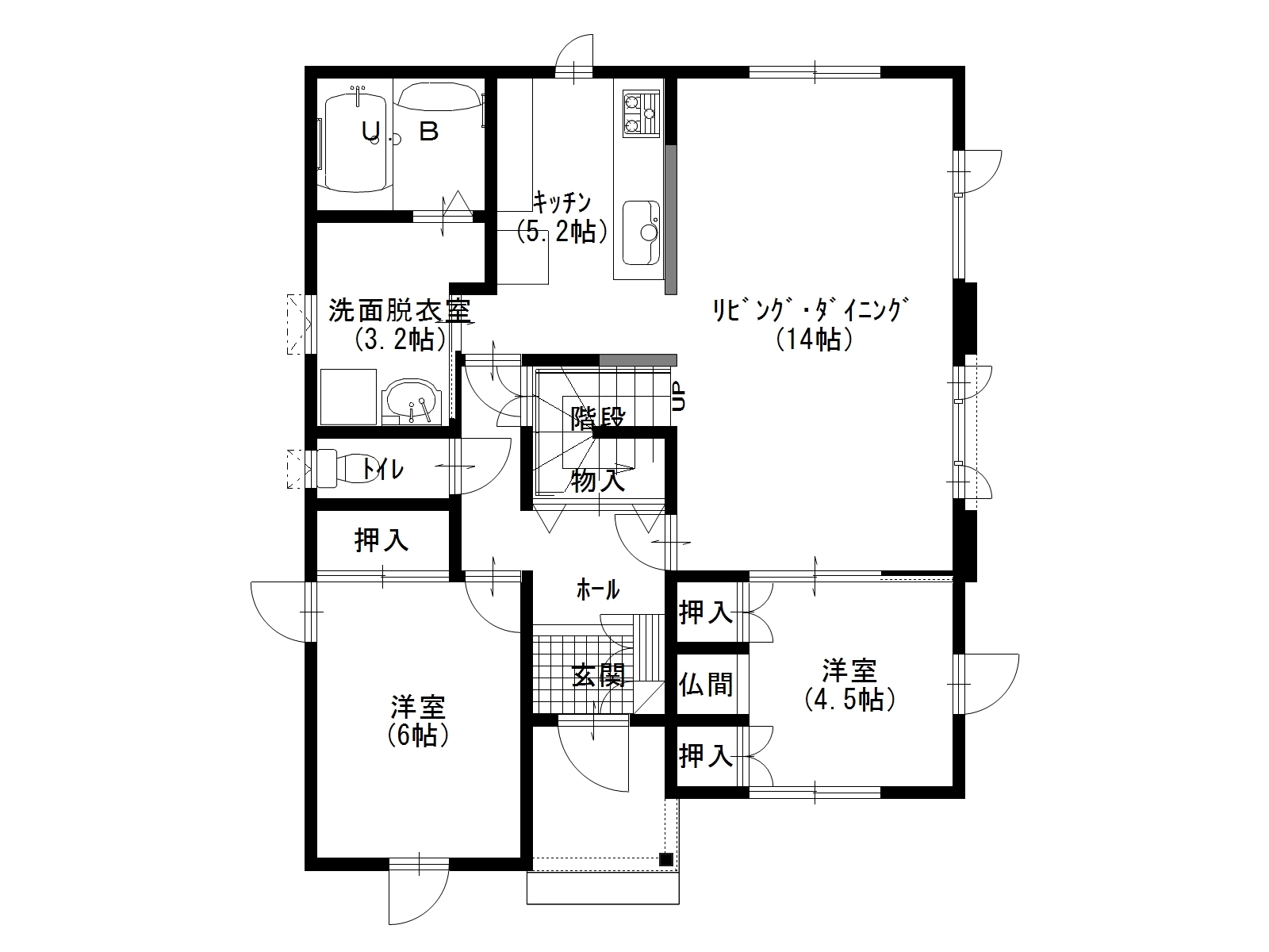 1階床面積 75.36㎡(22.79坪) 2階床面積52.72㎡(15.94坪) 延床面積128.08㎡(38.73坪)